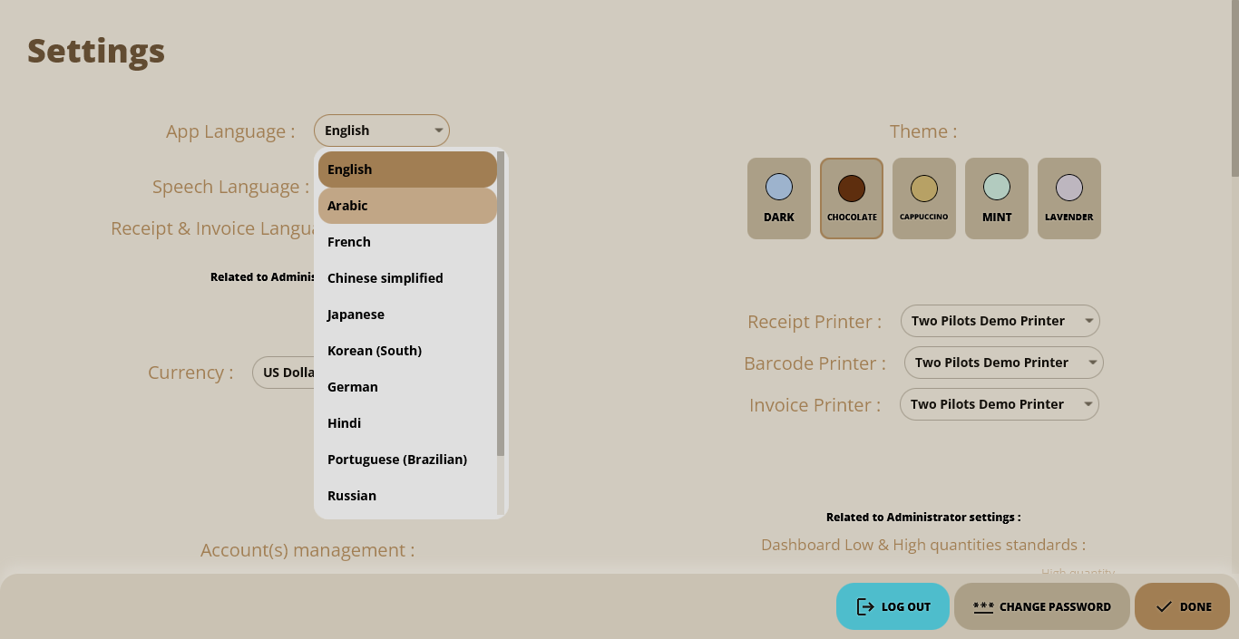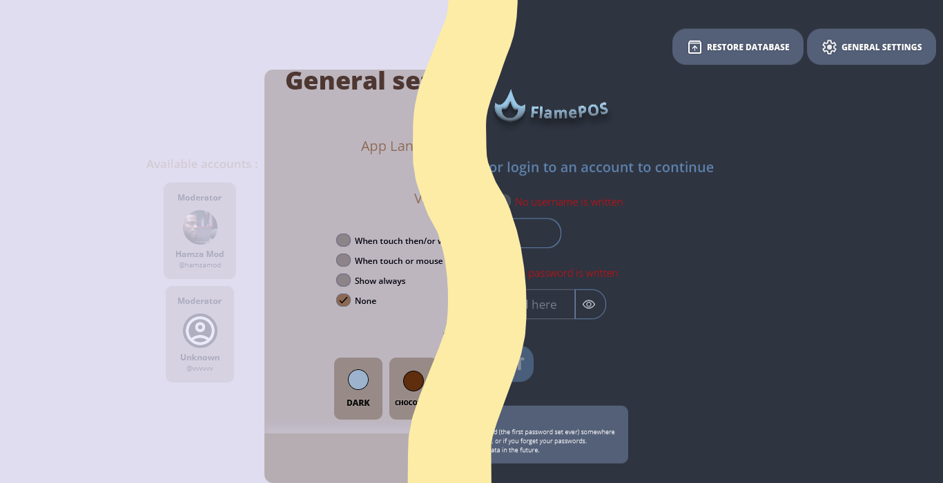FlamePOS gives you endless settings to shape the app your way, from managing accounts and permissions to adjusting languages, quantities, locations and themes—all tailored to fit how your business operates.